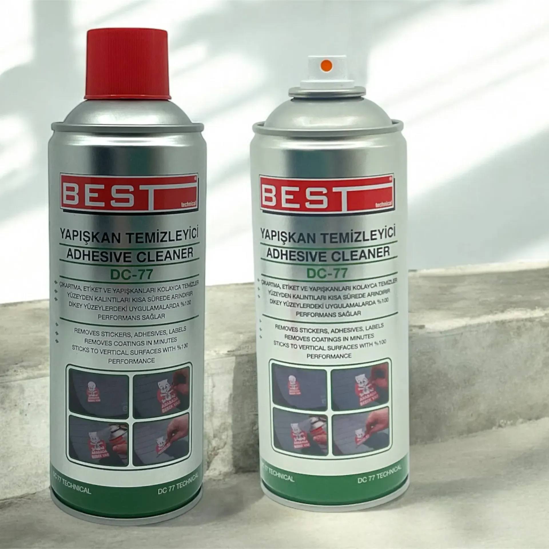 - Bu spreyler, etiketlerin ve bantların yapışkanını çözer ve kalıntılarını temizler.