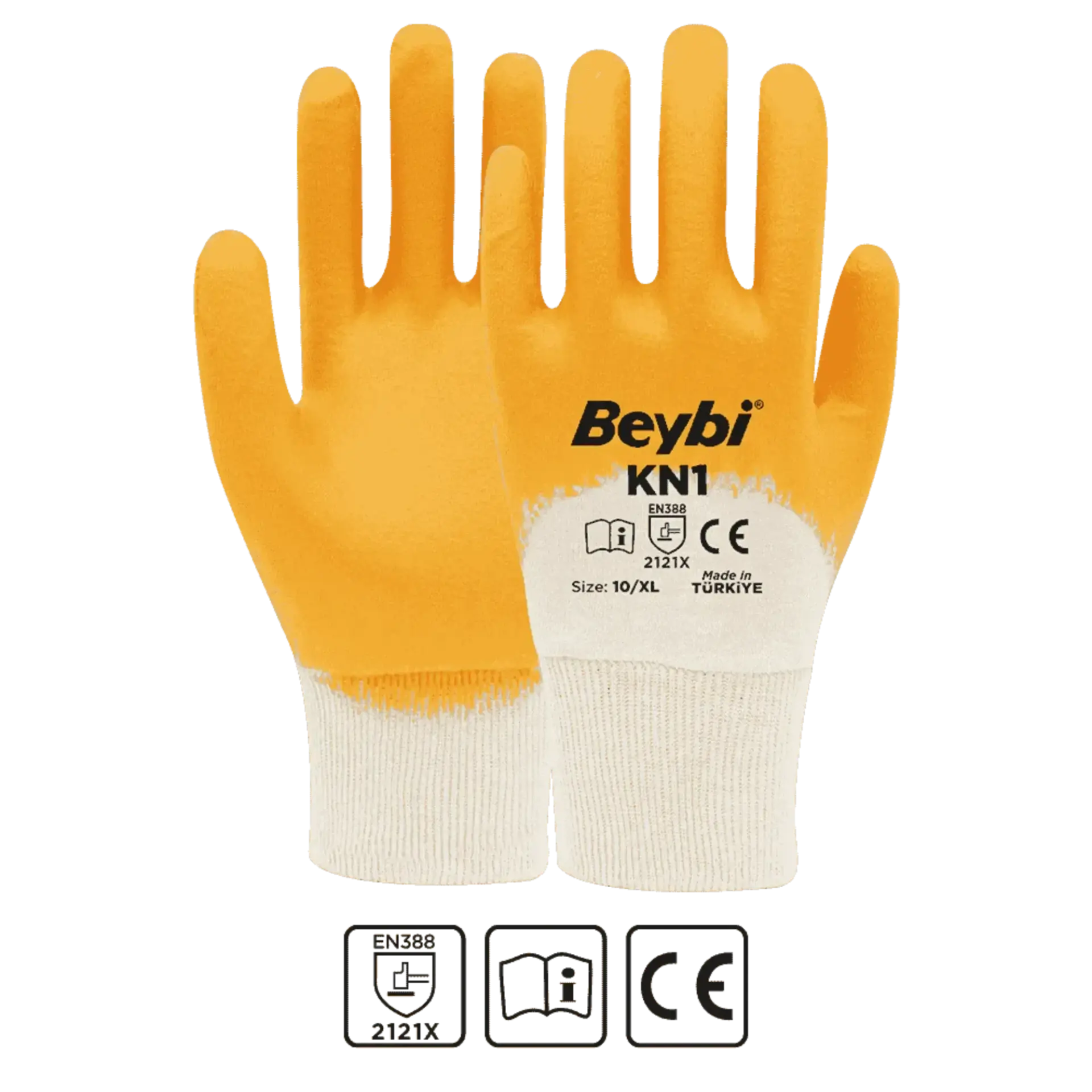 - Pamuk astar üzerine sarı nitril kaplı iş eldiveni.