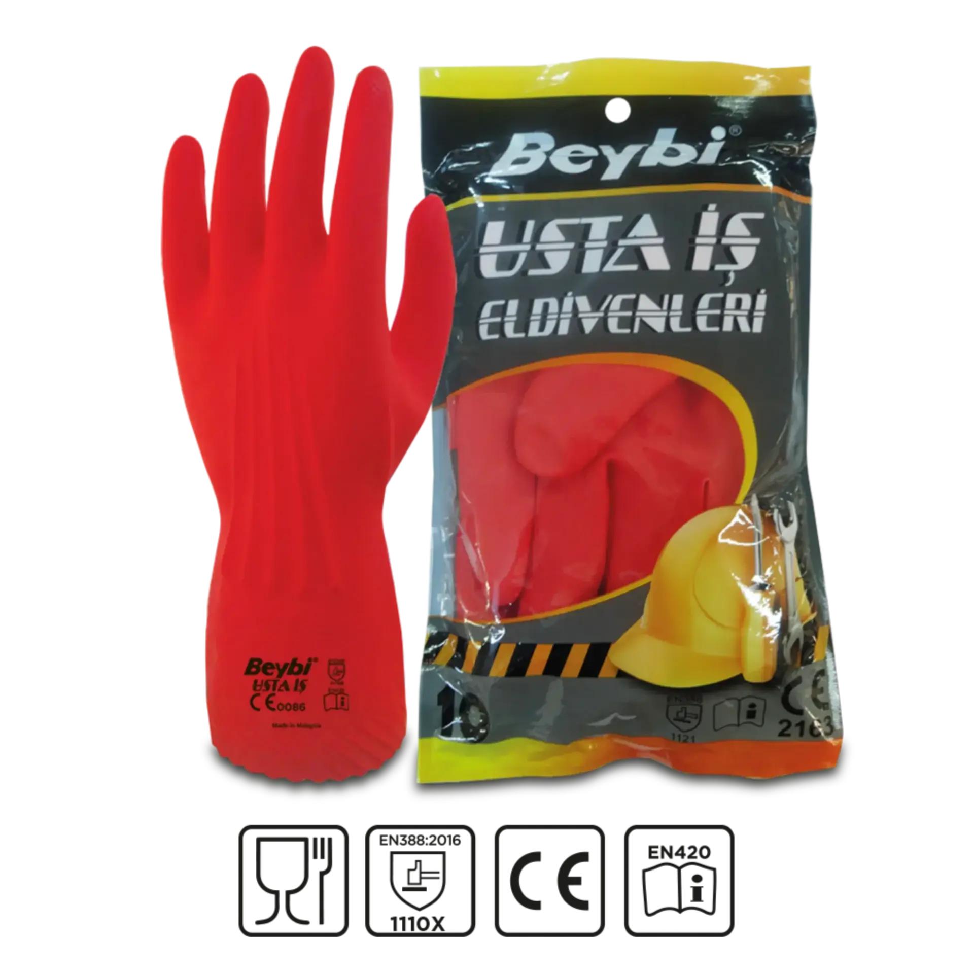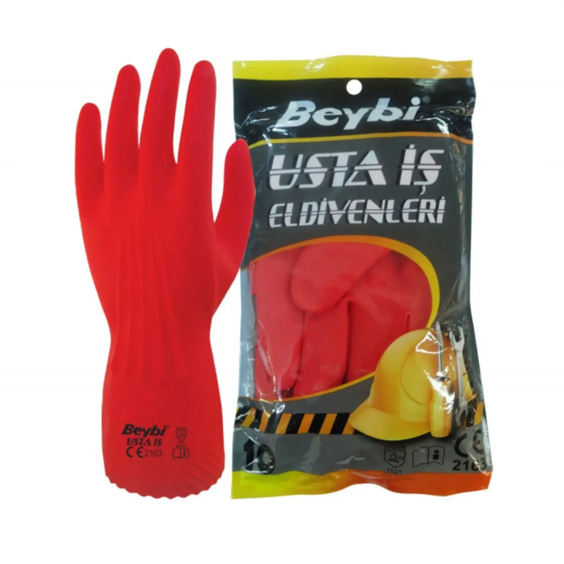 - Güçlü endüstriyel lateks eldiven.