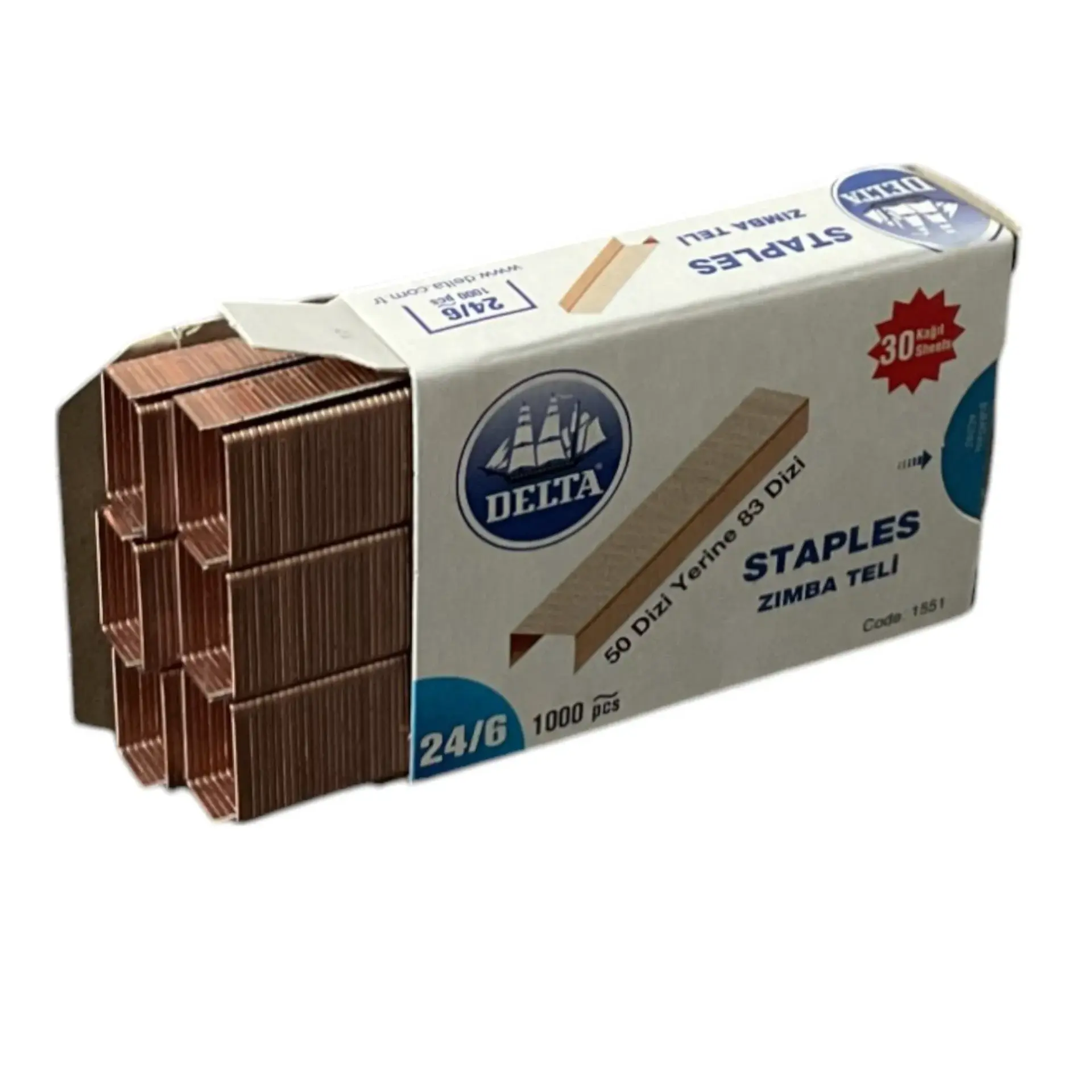 - 30 kağıdı basma kapasitesine sahip olan Delta Zımba Telimiz 24/6 ölçülerindedir.