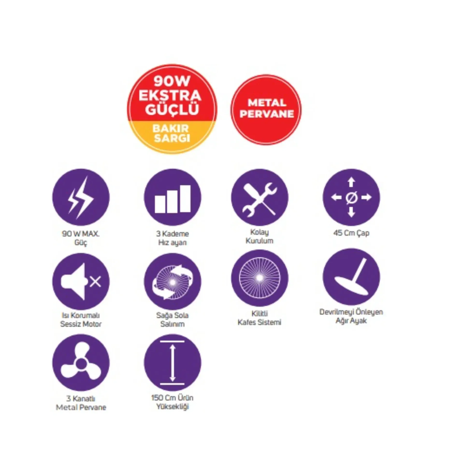 - 18 inç çapındaki geniş kanatları ile geniş alanları hızla serinletir, yaz aylarında konforlu bir ortam yaratır