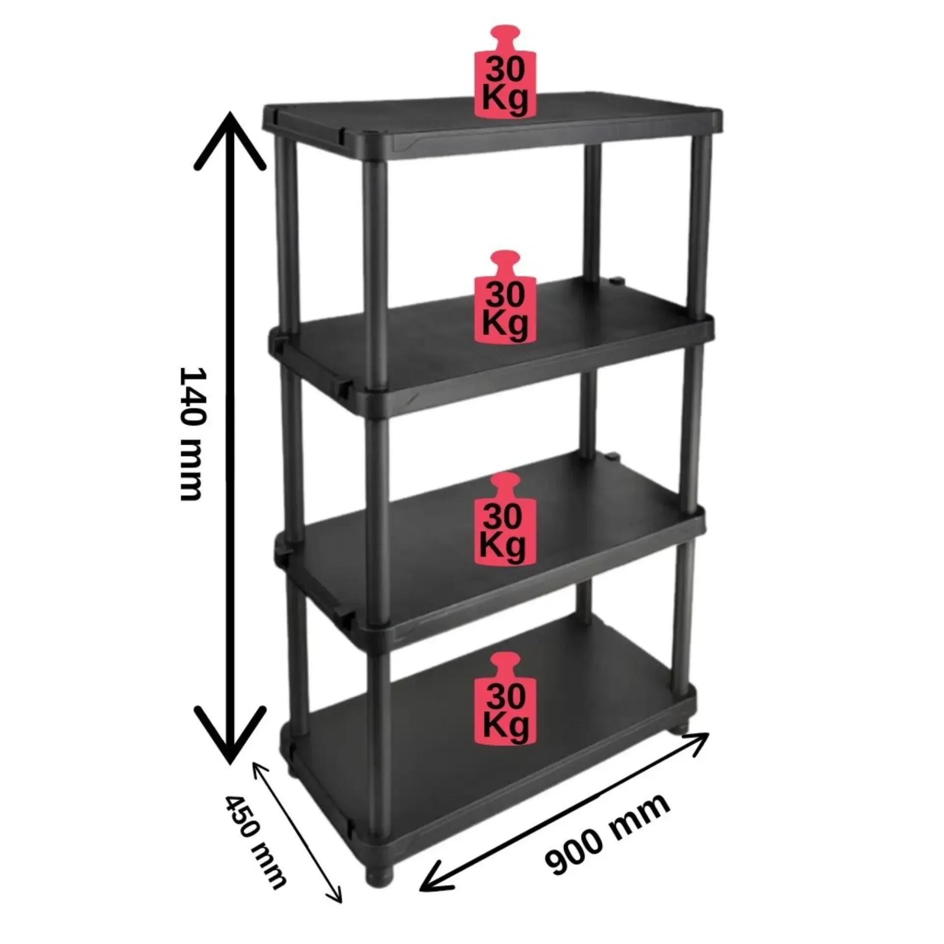 - Her bir raf 30 kg ağırlık taşıyabilir.