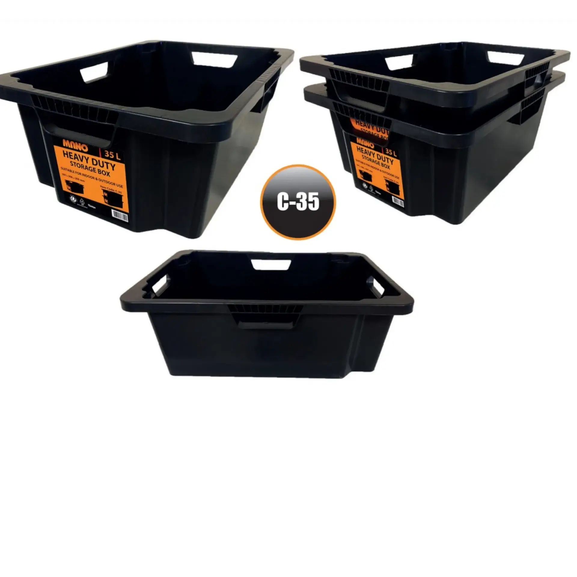 - Mano'nun 35 litrelik siyah kutusu çok dayanıklıdır ve geri dönüştürülmüş plastikten yapılmıştır.