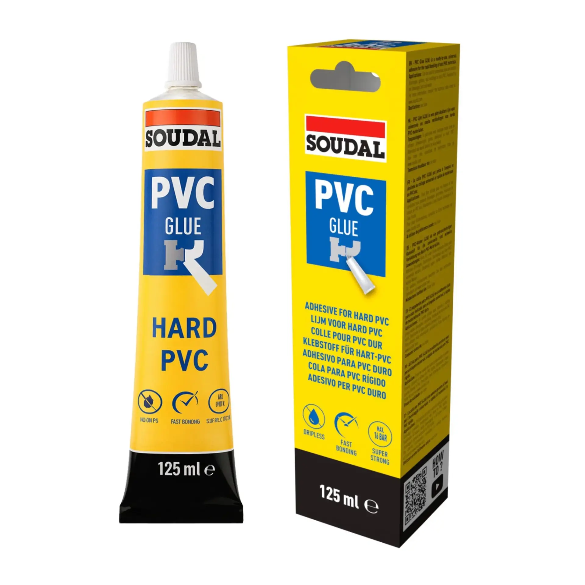 - Soudal PVC Yapıştırıcı 125 ml, sert PVC boruların ve bağlantı parçalarının yapıştırılmasında kullanılan, yüksek performanslı bir çözücü bazlı yapıştırıcıdır.