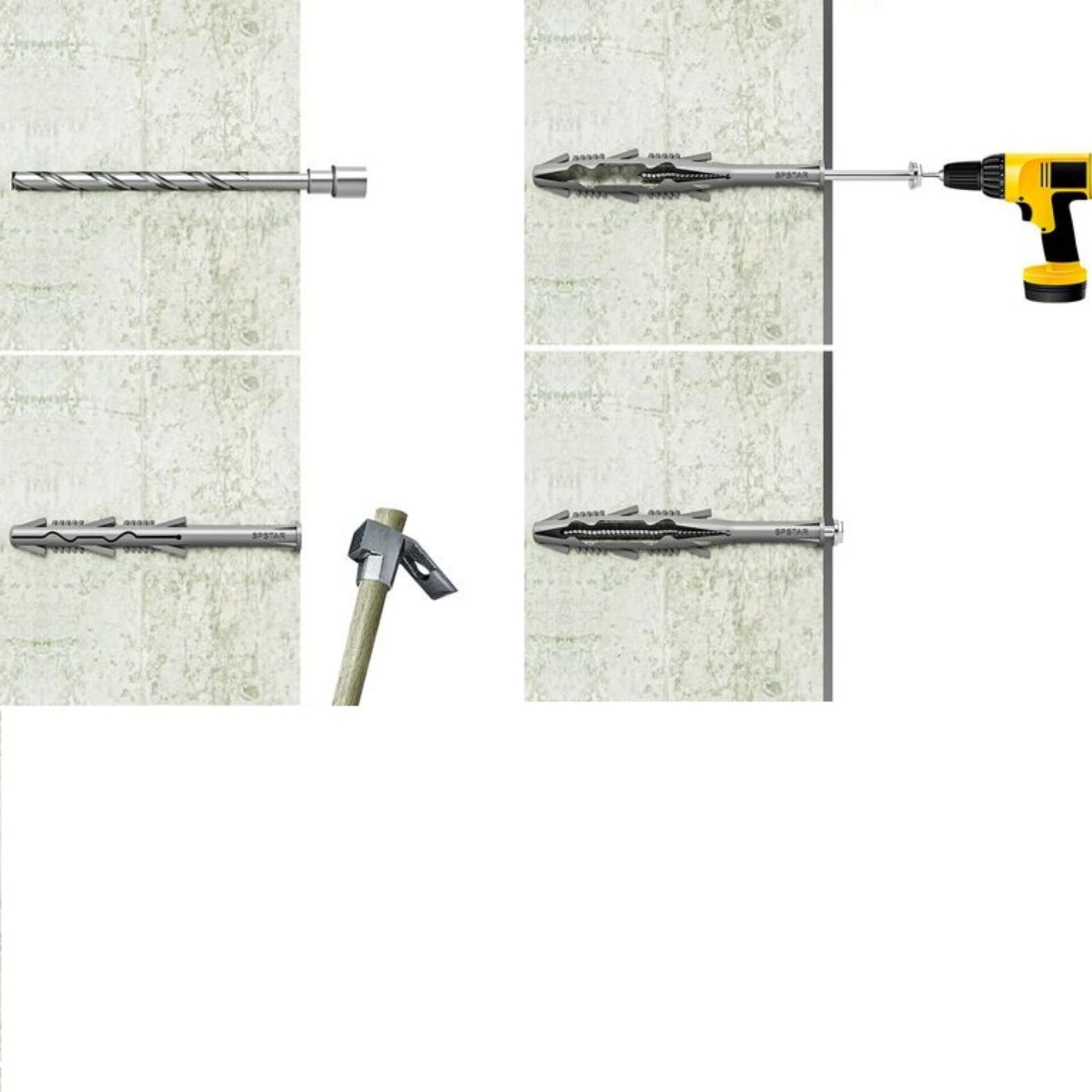 - Vidasız ağır yük dübelleri, vidaların yerine özel mekanik tasarımları sayesinde yüzeye sıkıca tutunur.